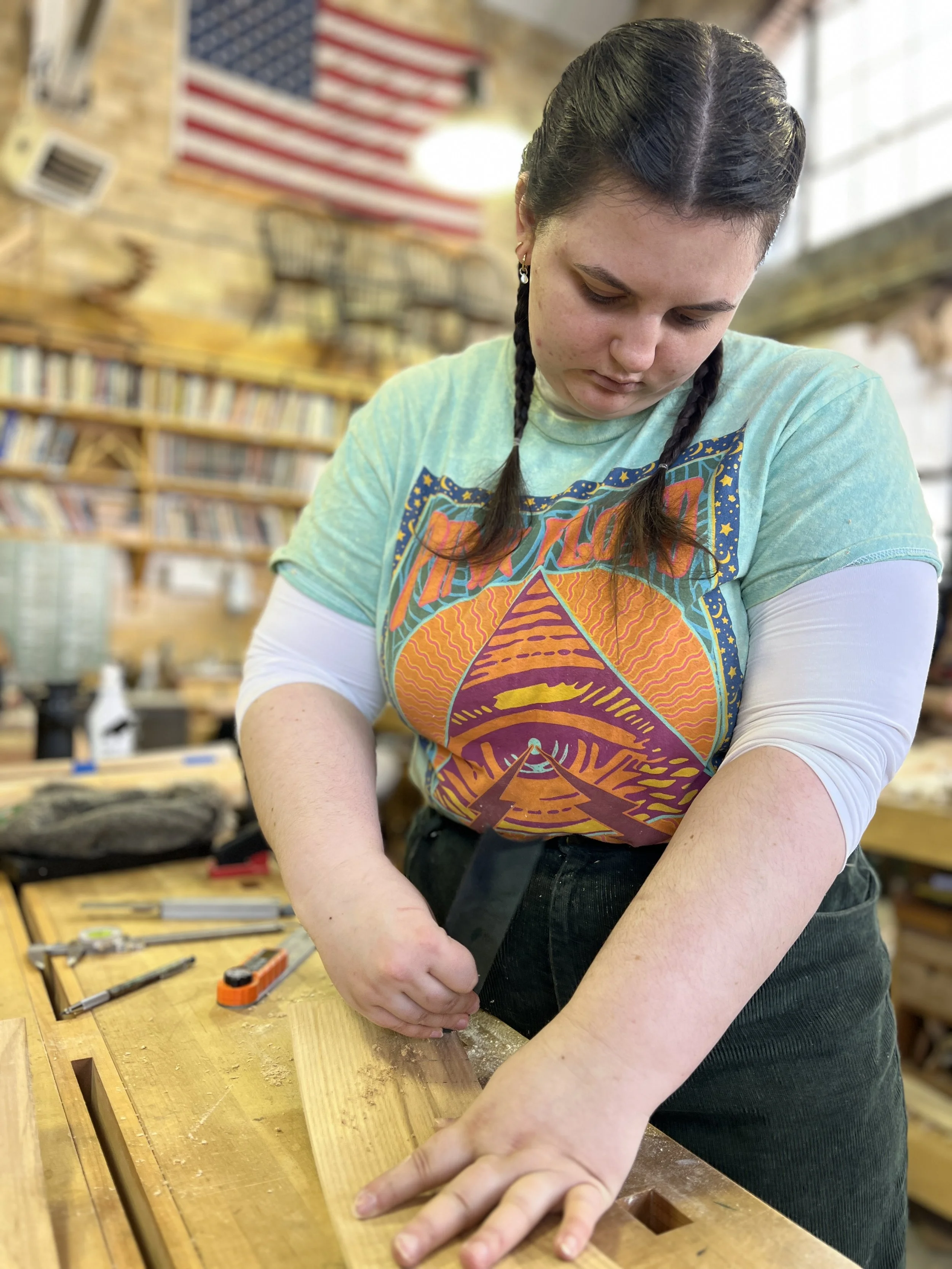 There is no better way to learn than through hands-on practice. and getting your hands “dirty”. This allows us to experience the process through all the senses, and helps to develop a feel for how to tools interact with the material. Doing this under the guidance of a mentor, teacher, or instructor has compounding effects on the learning process through a real-time feedback loop. Use athletics for a comparison: athletes at any level are not mastering their chosen sport by watching how-to videos. They are practicing day in and day out under the watchful eye of a coach who can provide real-time feedback. Continuous improvement in the craft requires a shift from chasing perfection to being present in the practice of furniture making.