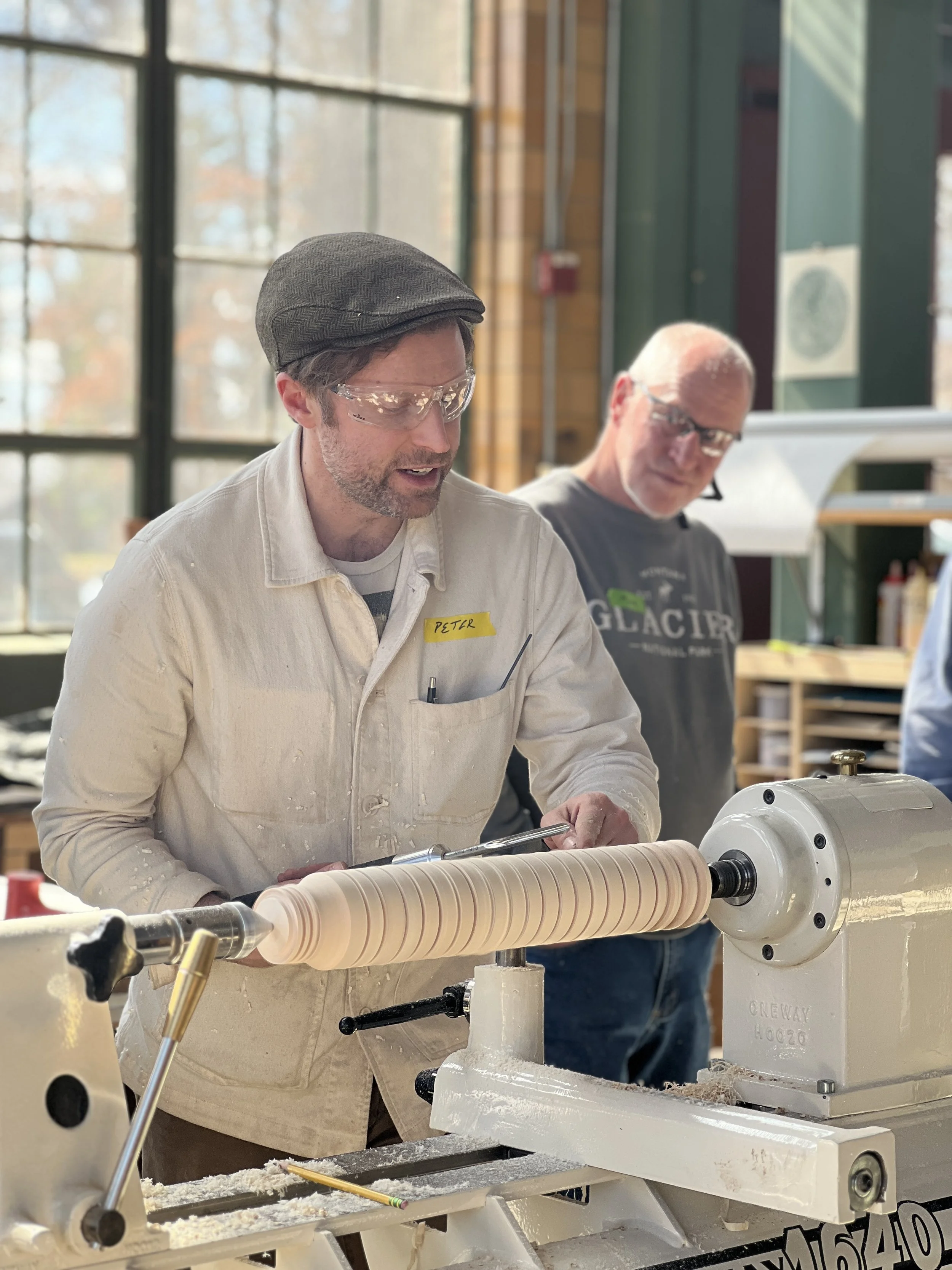 SBWI founder Luke Barnett splits wood with a student to make a Windsor Chair.